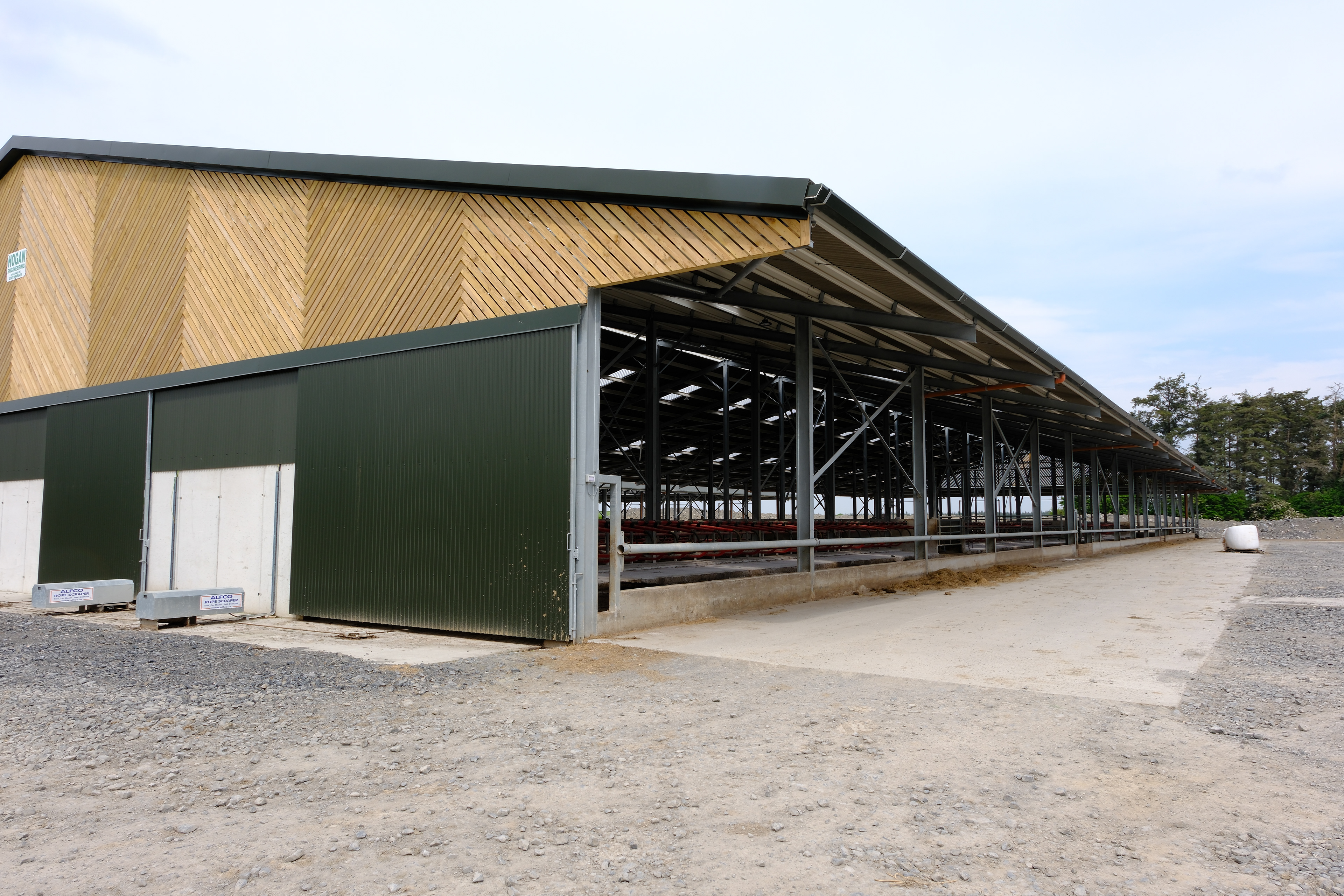 The enormous 1400 Acre estate required a new dairy shed and parlour and Hogan Engineering were tasked with the fabrication of 2*16 Bay Cattle Sheds over 38,000Sq Ft and 1*8 Bay Parlour Shed over 16,000 Sq Ft.